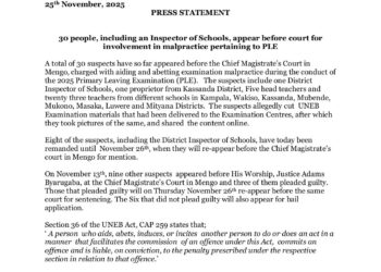 The Uganda National Examinations Board, UNEB, has confirmed that a total of thirty suspects have recently appeared before the Chief...