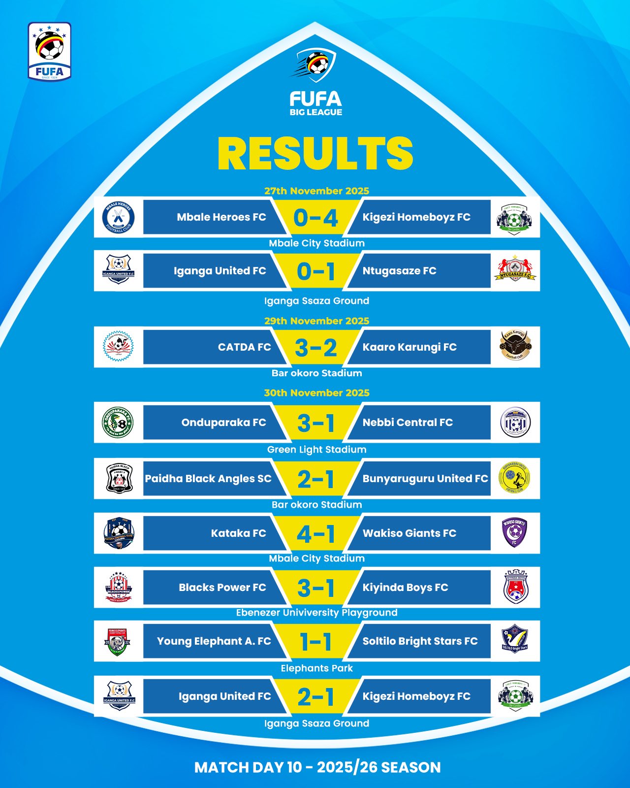 Radio Ankole confirms the FUFA Big League has officially released all Match Day 10 results.