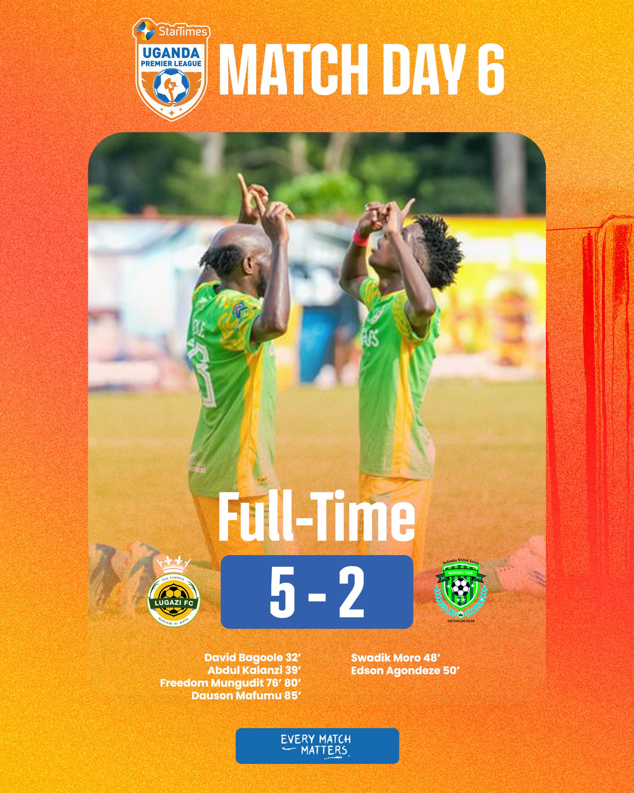 Radio Ankole, 99.3 FM Ntungamo brings you the latest sports update. In a recently concluded and decisive football fixture, Lugazi Football Club secured a comprehensive victory against Buhimba United Saints Football Club. The full-time whistle confirmed Lugazi FC’s dominant performance, as they successfully netted an impressive five goals. Buhimba United Saints FC, in their efforts, managed to score two goals in response. The final scoreline clearly reflected Lugazi FC’s superior play, ending with Lugazi FC five goals to Buhimba United Saints FC’s two, marking a significant triumph for Lugazi FC in this high-scoring encounter.