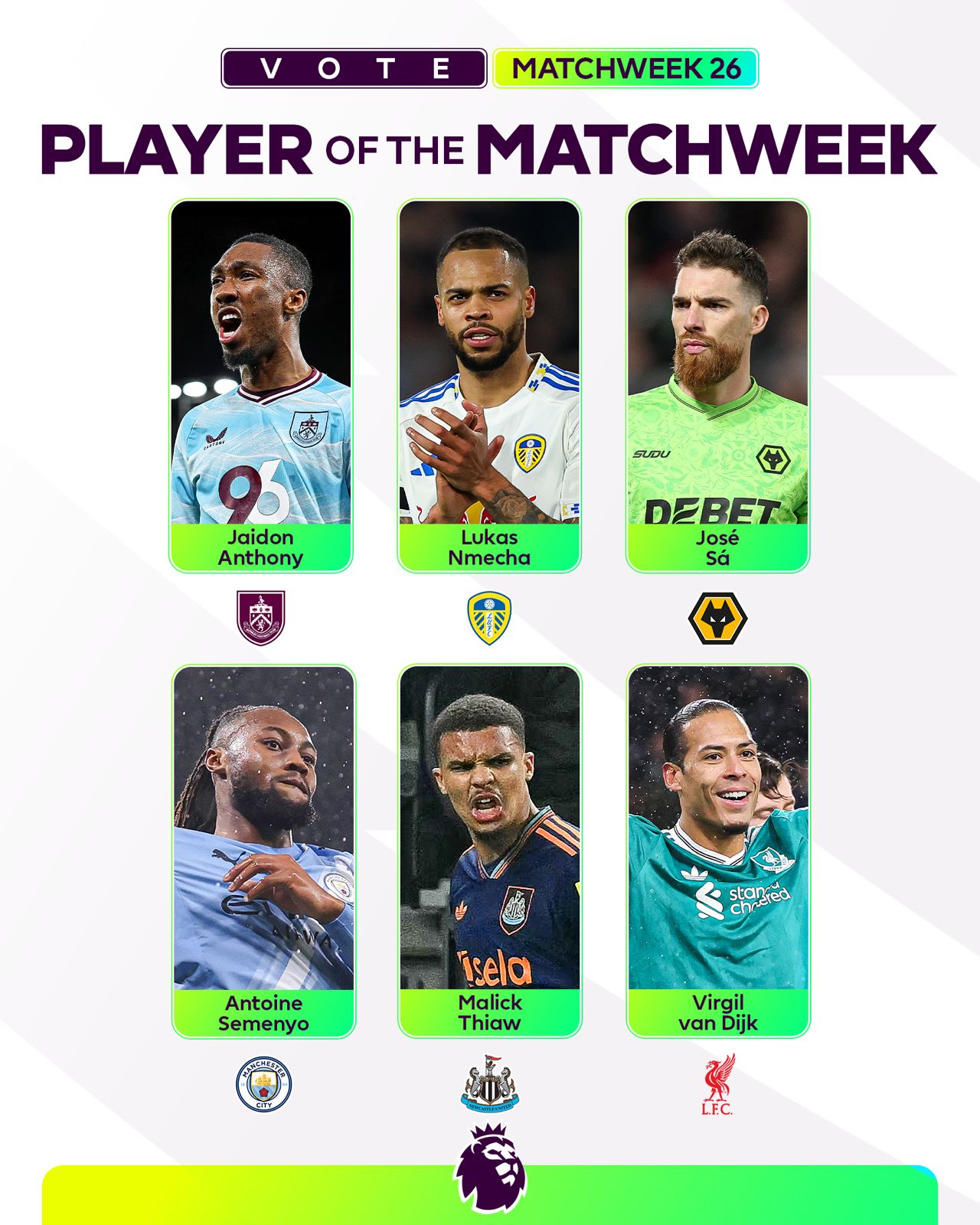 Good evening, listeners, from Radio Ankole, 99.3 FM Ntungamo. We bring you the latest in sports updates. Following a captivating Matchweek 26, six exceptional athletes have been identified as the standout performers. These star players truly shone on the field, demonstrating remarkable skill and impact throughout their respective matches. Their contributions were pivotal, earning them well-deserved recognition. Now, we invite you, our dedicated audience, to cast your crucial vote. Select your ultimate Player of the Matchweek from these distinguished individuals who delivered such memorable performances. Your participation is vital in recognizing excellence and celebrating the best of football from Matchweek 26.