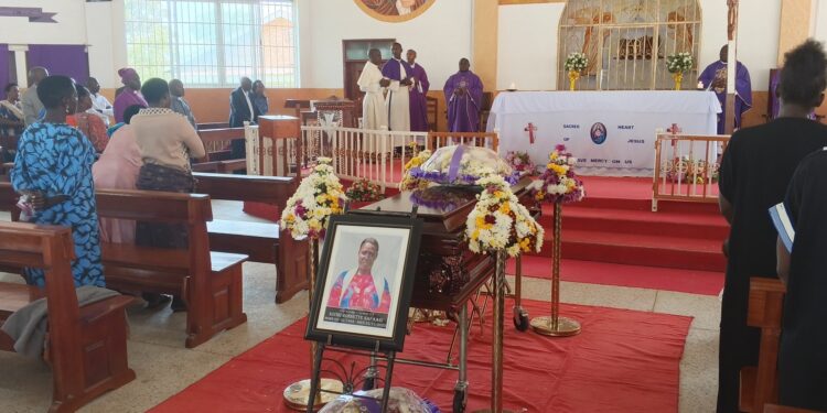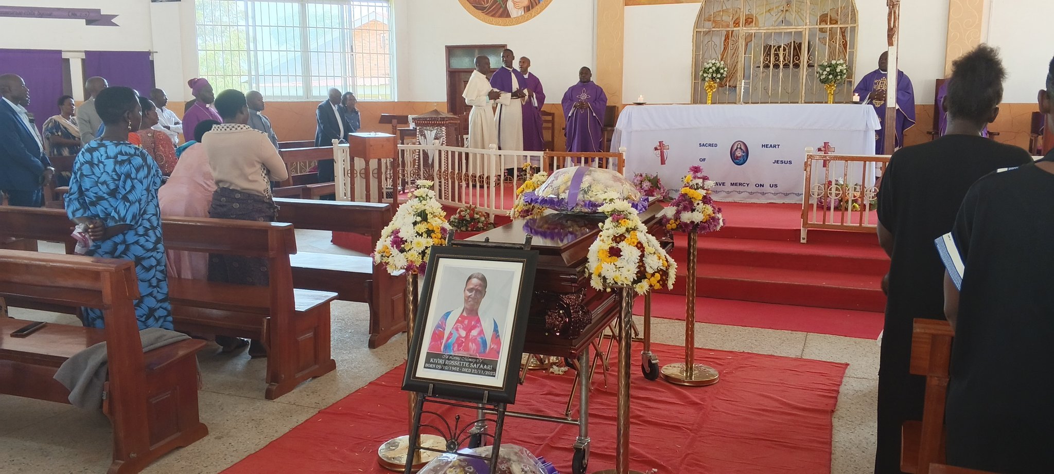 Good evening listeners, this is Radio Ankole, 99.3 FM Ntungamo, with an important news update. A solemn Requiem Mass is presently being held for the late Kiviri Rosette Safaari, who recently passed away at the age of 63. Mrs. Safaari was the beloved mother of Mr. Kiiza Fedelis, who serves as the Chief Administrative Officer for Ntungamo District. The sacred ceremony is taking place at the Sacred Heart Town Catholic Parish, where mourners have gathered to pay their respects and commemorate her life. Following today’s mass, Mrs. Kiviri Rosette Safaari will be laid to rest tomorrow at her ancestral home. The burial ceremony is scheduled to take place in Kabuhungye, which is situated within Murambi ward.