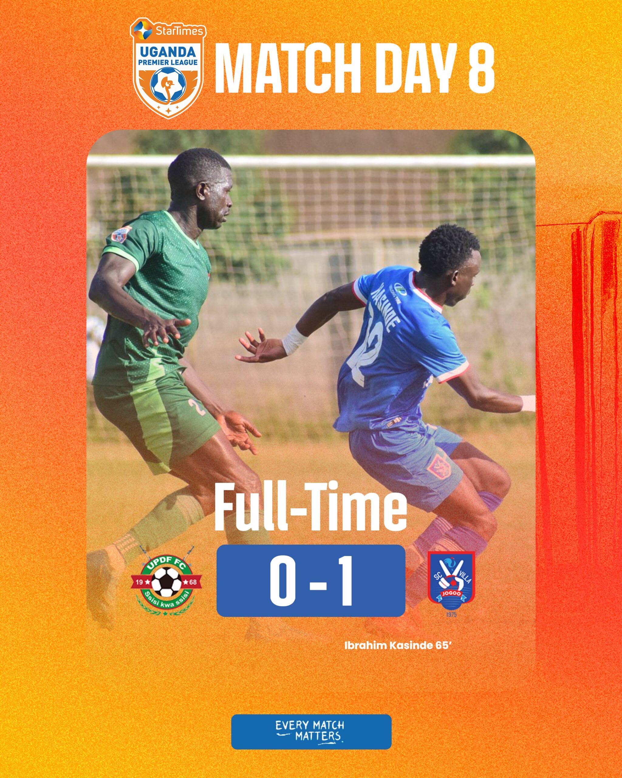 Good evening, listeners. This is Radio Ankole, 99.3 FM Ntungamo, bringing you the latest sports update from the StarTimes Uganda Premier League. The highly anticipated fixture between UPDF Football Club and Sports Club Villa has now reached its conclusion. Following the final whistle, the full-time score has been confirmed. Sports Club Villa has secured a victory over UPDF FC with a scoreline of one goal to nil. The match concluded with UPDF FC registering zero goals, while Sports Club Villa successfully found the back of the net once. This result means that Sports Club Villa collects all three points from this encounter in the ongoing Uganda Premier League season. The final score, UPDF FC zero, SC Villa one, reflects a hard-fought game where SC Villa managed to break the deadlock and maintain their lead until the very end. This outcome will undoubtedly have implications for the league standings as the season progresses. Stay tuned to Radio Ankole for more comprehensive sports coverage.