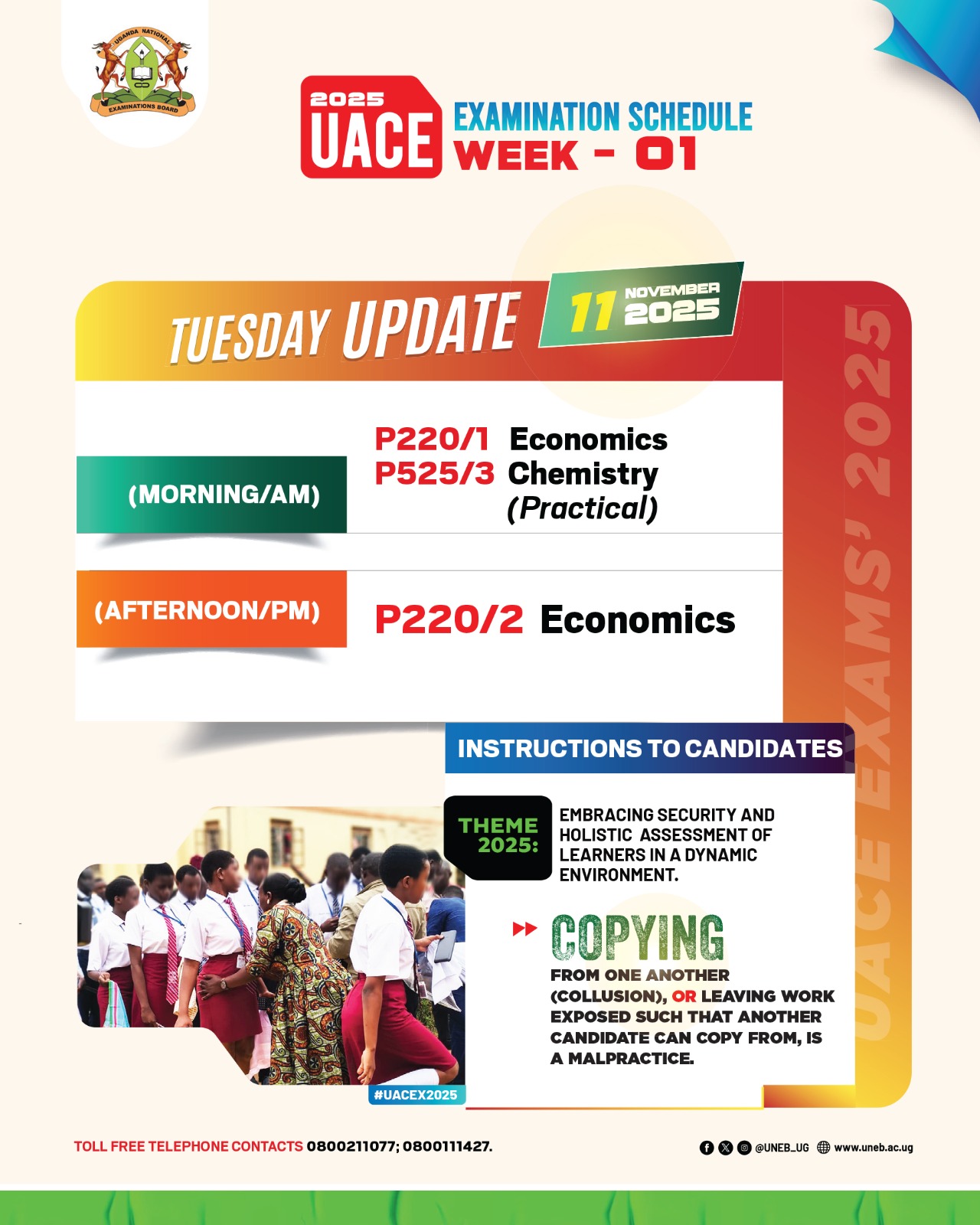 Good morning, listeners, from Radio Ankole, 99.3 FM Ntungamo. We bring you an important update regarding the ongoing Uganda Advanced Certificate of Education, UACE, examinations for the year 2025. Today marks the second day of these crucial national assessments, as students across the country continue their pursuit of academic excellence. According to official reports from the Uganda National Examinations Board, UNEB, candidates are currently engaged in various papers scheduled for this second day of the examination period. Specifically, students are sitting for the Economics Paper One examination. Concurrently, science candidates are undertaking their Chemistry practical assessments. These practical examinations are a vital component for students pursuing science disciplines, designed to test their hands-on skills and experimental understanding. The UACE 2025 examinations are proceeding as planned, with UNEB overseeing the smooth and fair conduct of these national assessments across all centers.