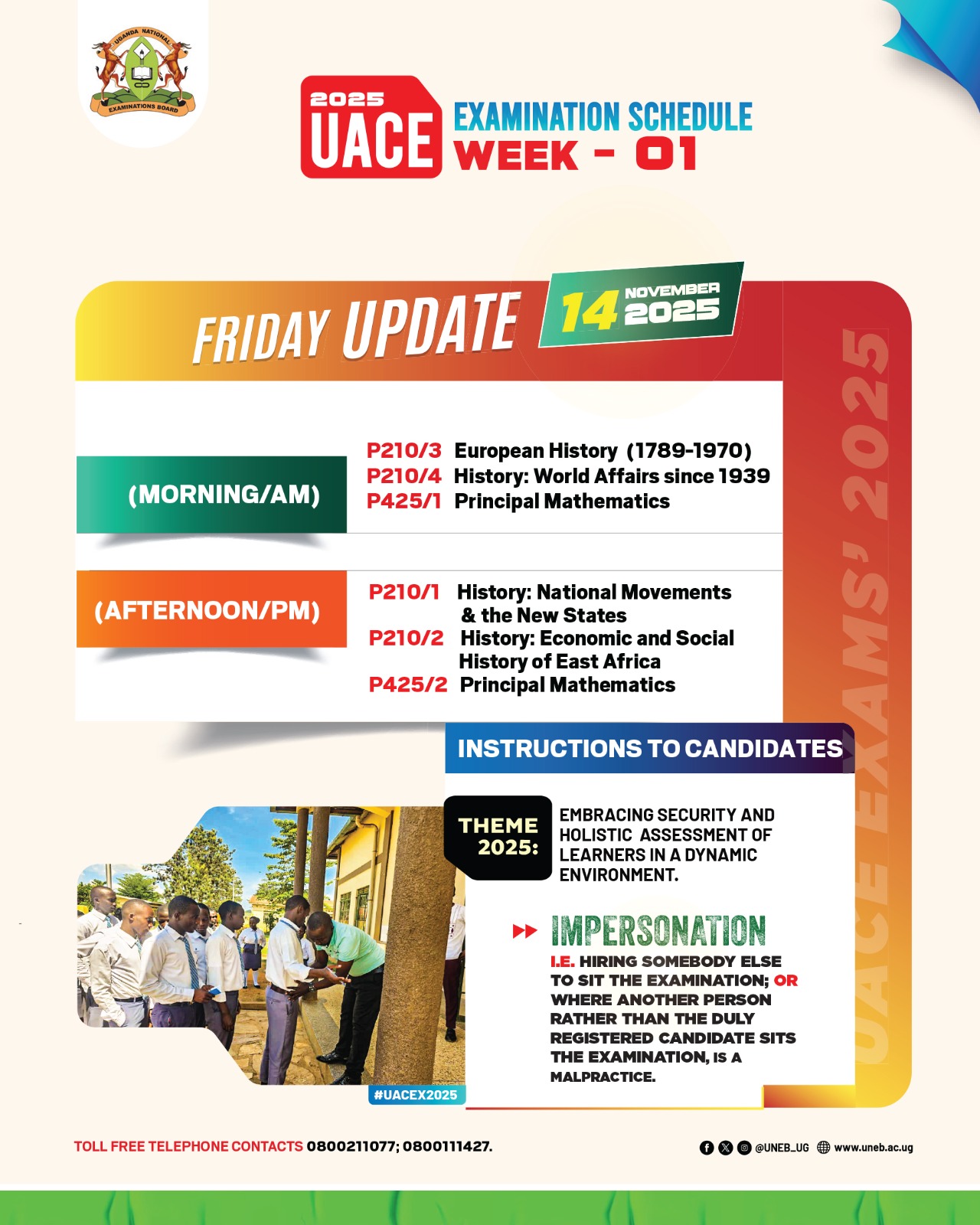 Good morning, listeners. This is Radio Ankole, 99.3 FM Ntungamo, bringing you a crucial update on the ongoing national examinations. The Uganda National Examinations Board, widely known as UNEB, has officially confirmed that the Uganda Advanced Certificate of Education, or UACE 2025 Examinations, has today entered its fifth consecutive day of assessment. This marks a significant phase in the examination timetable, as thousands of candidates across various centers continue their academic pursuits. According to the official communication from UNEB’s verified digital platform, candidates are actively participating in the morning session of Day Five. During this period, students are specifically sitting for Paper P210/3. While the complete subject designation for this particular paper was not fully detailed in the initial announcement, such codes frequently pertain to core advanced-level subjects, often including disciplines like Economics or English. The rigorous examination process continues nationwide, underscoring the commitment of these learners to their future academic and professional endeavors. Radio Ankole will continue to provide timely updates as the UACE 2025 examinations progress.