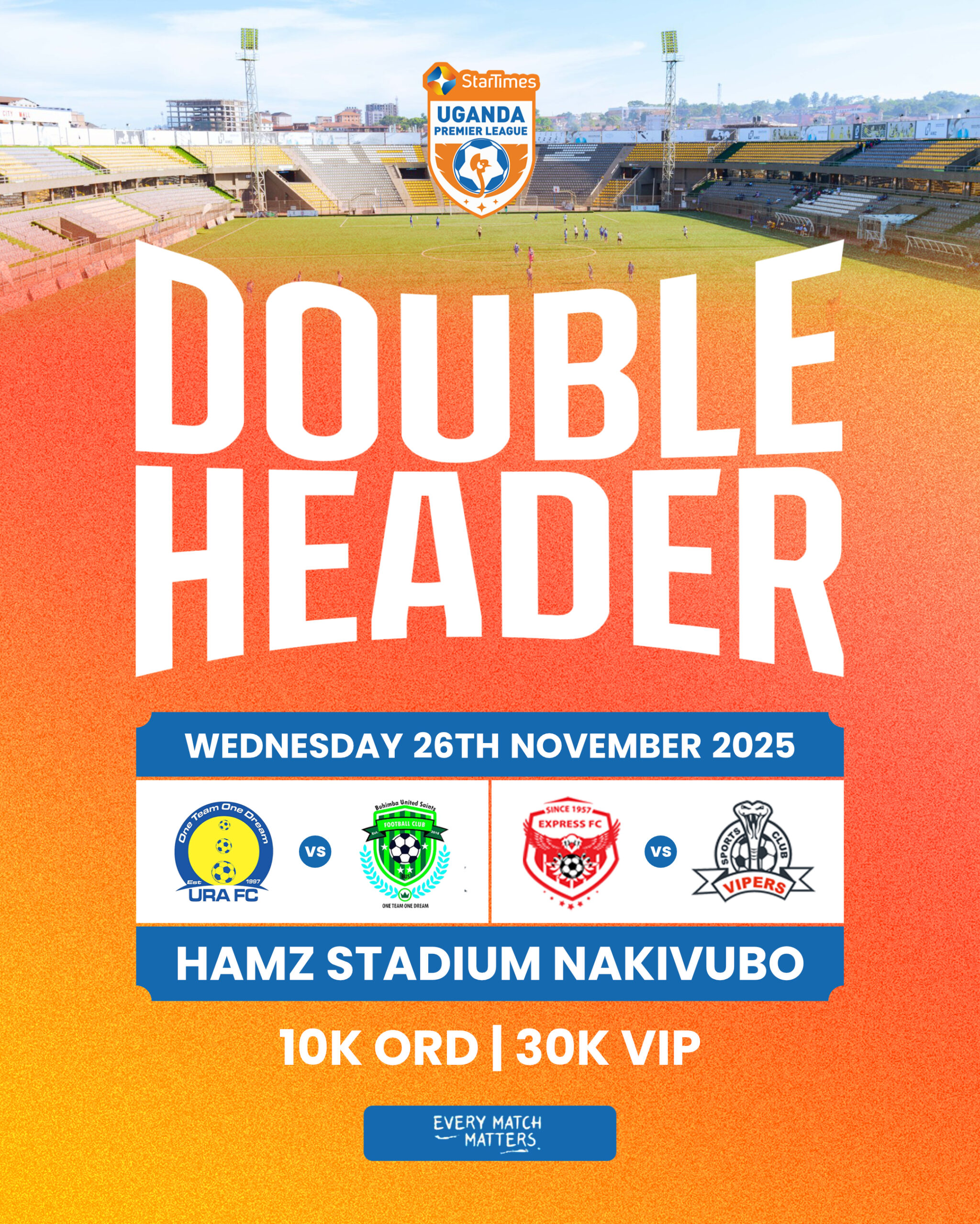 Good morning, listeners of Radio Ankole, 99.3 FM Ntungamo. We bring you an important update from the world of Ugandan football. The Uganda Premier League, or UPL, has officially announced an exciting fixture arrangement that is set to captivate football fans across the nation. This special event will feature not one, but two thrilling matches, all taking place at a single, convenient venue, and accessible with just one ticket.Football enthusiasts are strongly encouraged to mark their calendars for Wednesday, 26th November 2025. On this significant date, all the action will unfold at the prestigious Hamz Stadium, located in Nakivubo. This initiative by the UPL aims to provide an unparalleled experience for supporters, offering the unique opportunity to witness a full day of captivating football. Fans will have the distinct advantage of attending two high-stakes encounters, all under the umbrella of a single admission ticket. This arrangement underscores the league’s commitment to delivering exceptional value and maximizing the fan experience at the Hamz Stadium in Nakivubo on Wednesday, 26th November 2025.